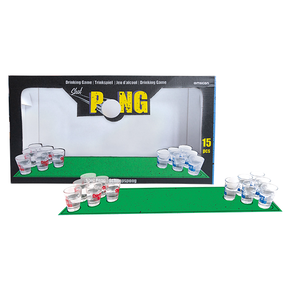 Jeu à boire Shot Pong avec 1 tapis et 12 verres et 2 balles en plastique