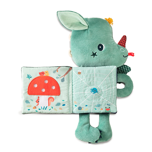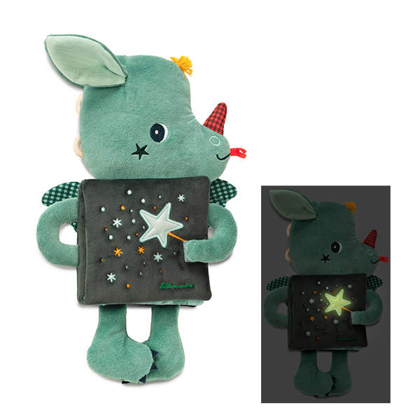 Ce livre doudou irrésistible ne manquera pas de tranquilliser bébé. Le livre offre un éventail d'activités relaxantes. La douceur du tissu et le museau mignon invitent aux câlins. Lorsque la lumière s'éteint, l'illustration sur la couverture s'éclaire et devient ainsi une veilleuse jusqu'à ce que le bébé s'endorme.