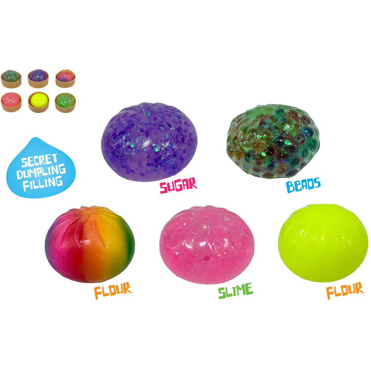Kawaii Dumpling Glitter, Slime, arc-en-ciel, perler - Mix couleur assortis en display.
