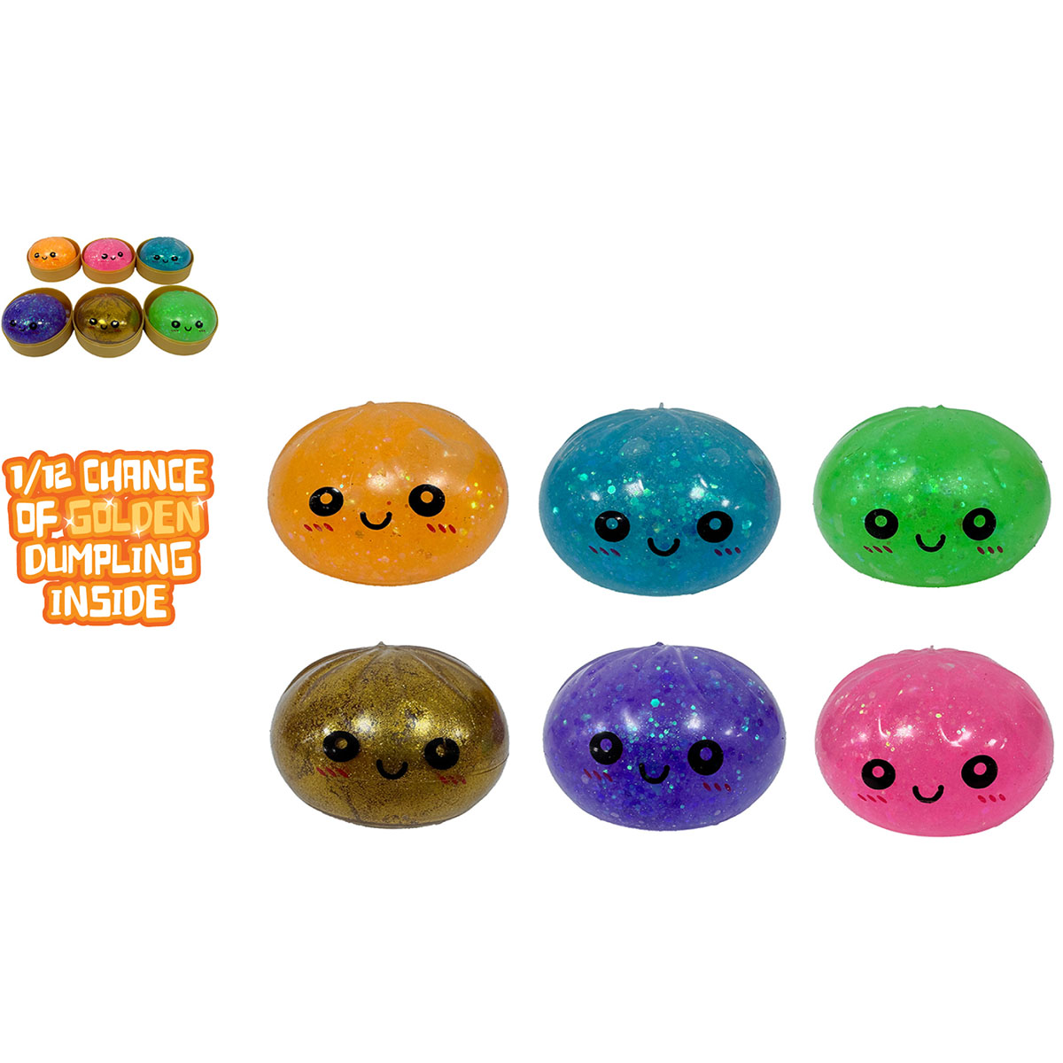 Kawaii Dumpling Glitter 8.5cm, couleur assortis, 1 dumpling dorée en display.