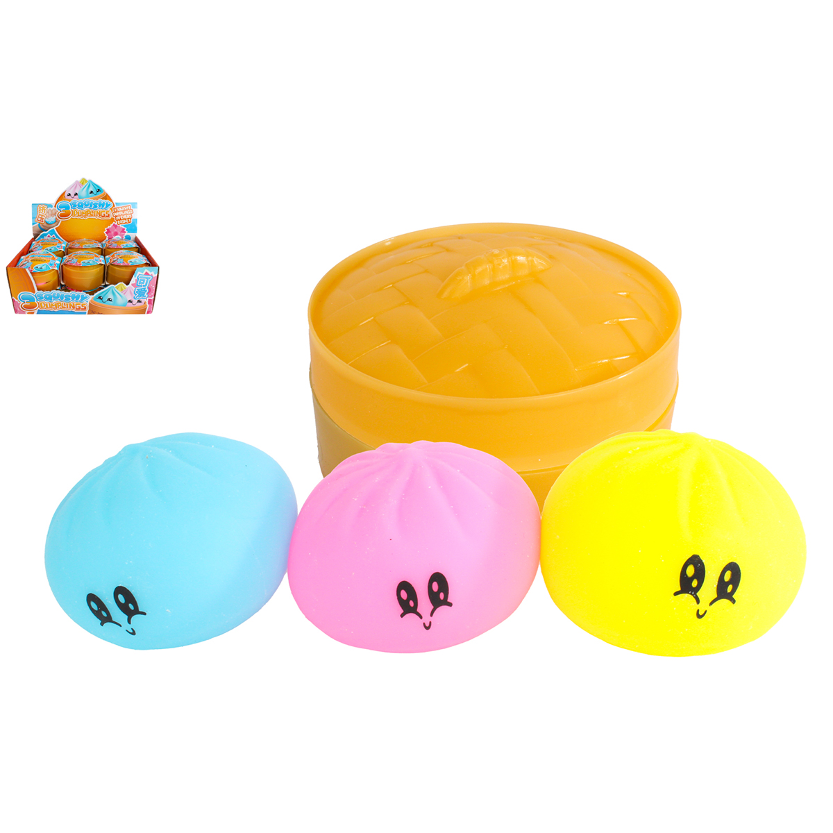 Kawaii Dumplings 3 pièces à 5cm dans le panier 10cm en display.