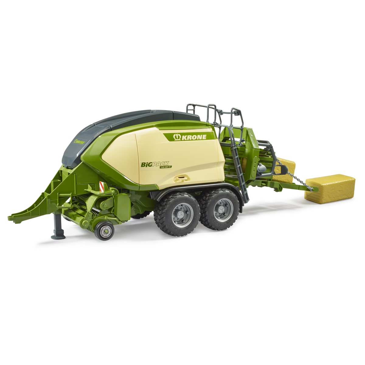 La société Krone est un fabricant innovant de moissonneuses. Avec sa nouvelle gamme de presses à grosses balles BiG Pack, KRONE démontre une fois de plus que même après plus de 25 ans, son esprit d’innovation ne faiblit pas. Le BiG Pack 1290 est le modèle le plus vendu de KRONE et se retrouve désormais dans la gamme agricole de BRUDER. Comme l’original, le jouet séduit également par ses fonctions innovantes. Le ramasseur peut être rabattu et est entraîné par des roues latérales. Les clapets latéraux s’ouvrent et permettent d’accéder à la mécanique détaillée. Deux grosses balles peuvent être introduites par le clapet central et la presse peut être transportée automatiquement vers l’éjection lorsque le ramasseur est actif. Ce nouveau modèle BRUDER est compatible avec tous les tracteurs des séries 2000, 3000 et 4000. Pour un plus grand plaisir de jeu, l’accessoire balle rectangulaire (réf. 310.02342) peut être ajouté.