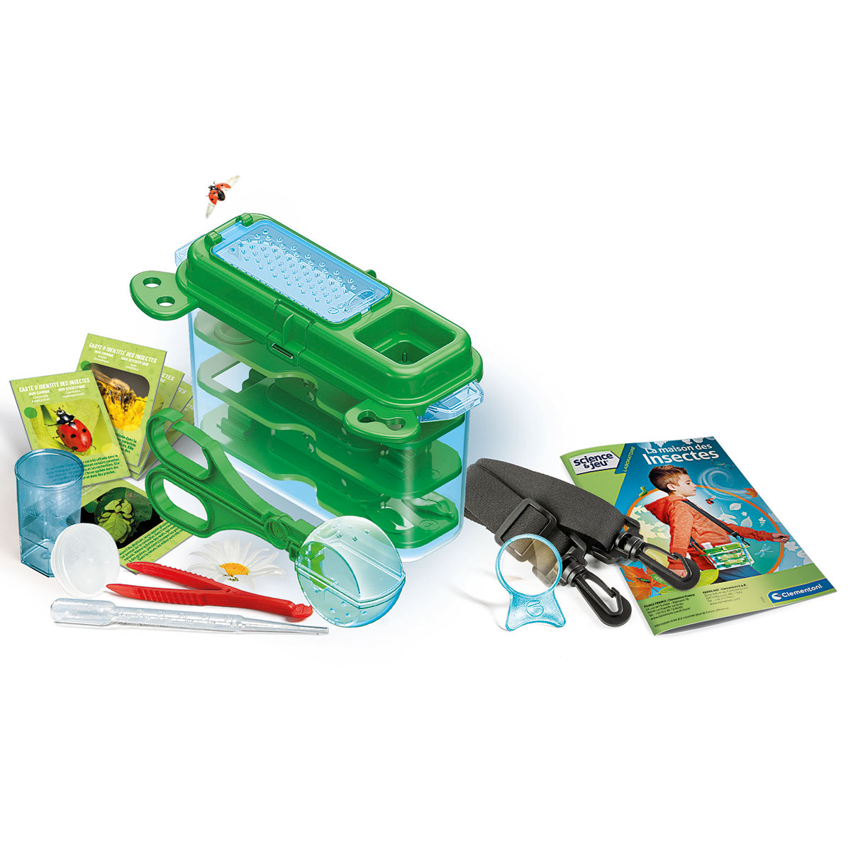 Un coffret scientifique complet pour créer une maison à insectes pour les accueilir, en prendre soin, découvrir leur monde et observer leurs habitudes. Le Set comprend un module transportable avec des plateformes, une pince, une loupe, des récipients, un pince attrape-insecte et une bandoulière. Le manuel illustré guide l'enfant dans ses observations et lui délivre de nombreuses informations sur le monde des insectes.