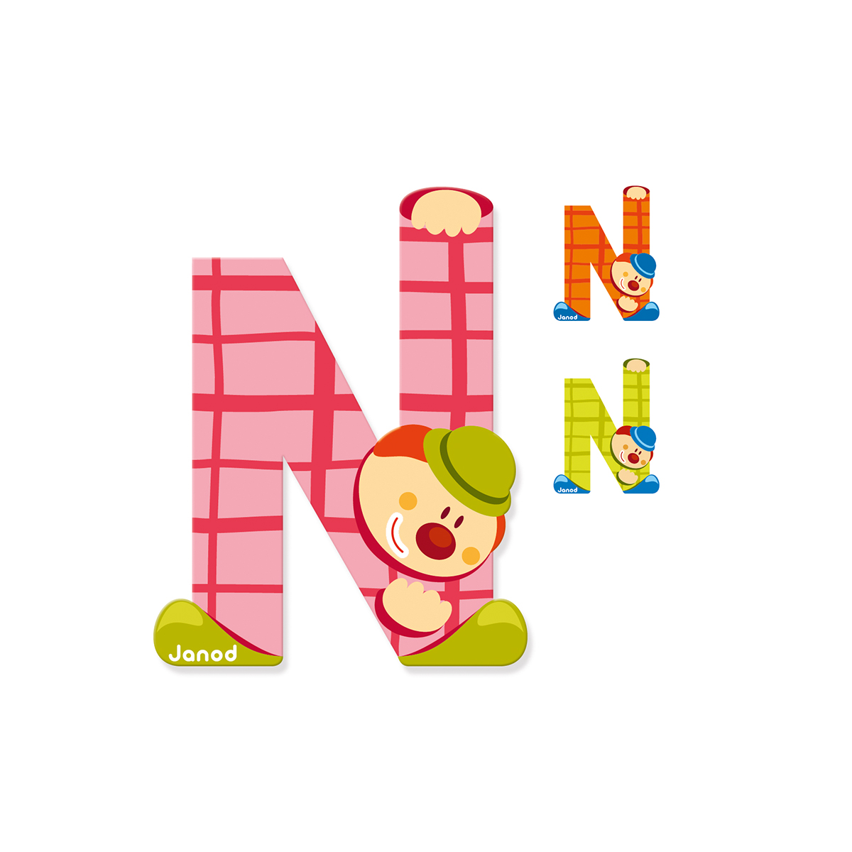 Lettre Clown N 6.5x0.7x8.5cm 10 gr, couleurs assorties, en bois