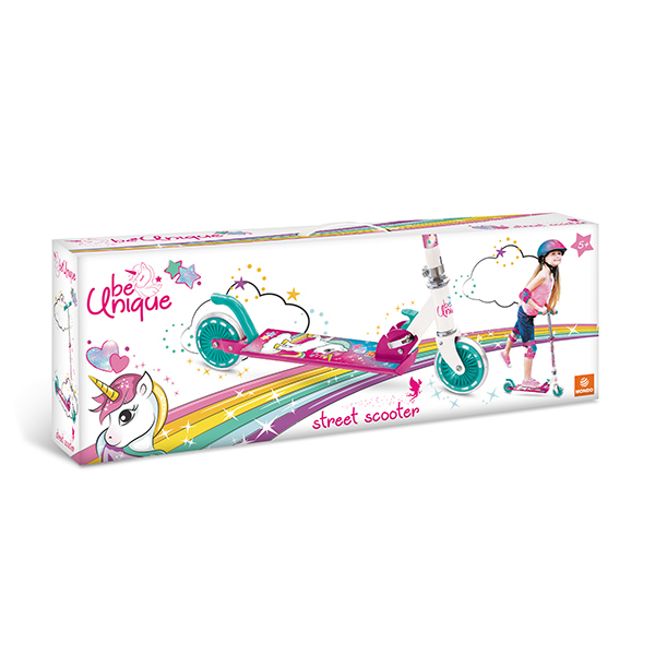 Ce magnifique scooter licorne est idéal pour les filles de 3 ans et peut être plié à la rentrée ensemble. Le guidon est réglable en hauteur. Prend en charge jusqu'à 50 kg.
