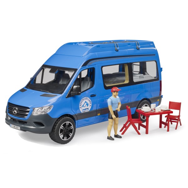 Faire du camping est vraiment dans l'air du temps. Dans toute l'Europe, les immatriculations de camping-cars ont atteint en 2018 et 2019 de nouveaux records. Les jeunes campeurs en herbe peuvent désormais découvrir ce loisir passionnant chez BRUDER. Le nouveau MB Sprinter est également un modèle de base pour les camping-cars. La version du nouveau MB Sprinter Camper se distingue par la richesse de ses détails et sa polyvalence. Le véhicule dispose de portes ouvrables au niveau de la cabine du conducteur et à l'arrière. La figurine bworld fournie peut ainsi accéder au lit double intégré et à son grand compartiment de rangement. La porte coulissante côté passager permettant d'accéder au coin cuisine est l'une des principales innovations de ce véhicule. Pour les journées ensoleillées, le mobil-home est équipé d'un auvent coulissant, ainsi que de meubles de camping élégants et de la vaisselle. De superbes extensions sont prévues pour le mobil-home: le kayak bworld (réf. 310.63155) qui peut être fixé sur le toit.