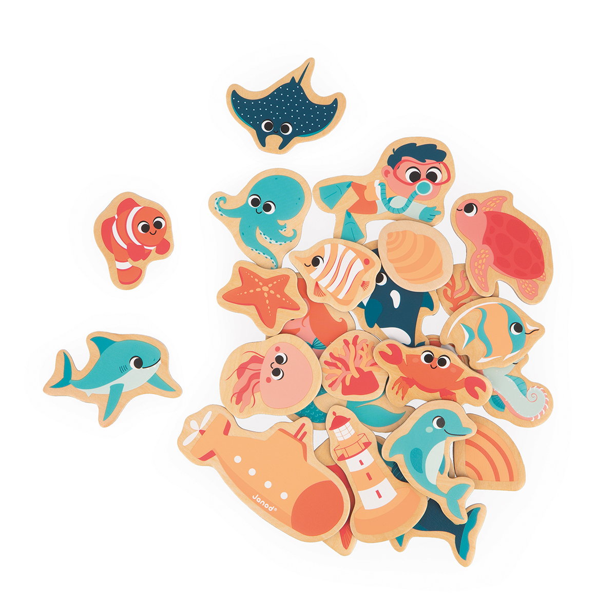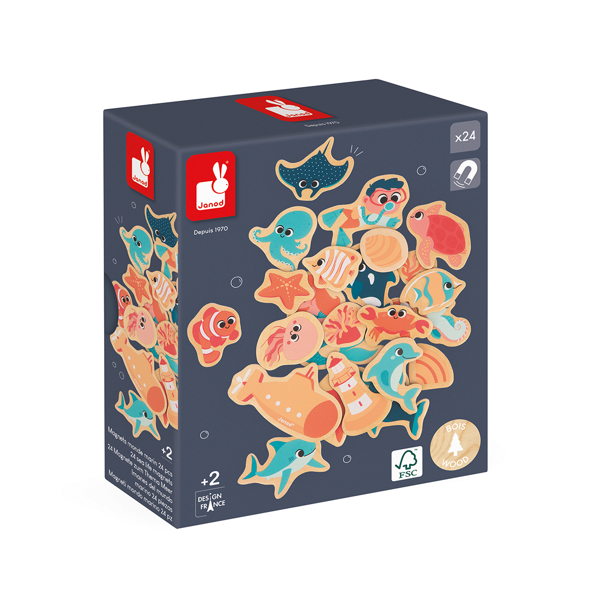 Partir en expédition en sous-marin pour découvrir les profondeurs de l'océan, c'est maintenant possible avec les magnets du monde marin ! Ce set est composé de 24 magnets en bois pouvant être positionnés sur des tableaux magnétiques, ou toute autre surface aimantée. Votre enfant pourra développer son imagination et sa motricité fine tout en s'amusant. Jouet magnétique en bois pour les enfants à partir de 2 ans.