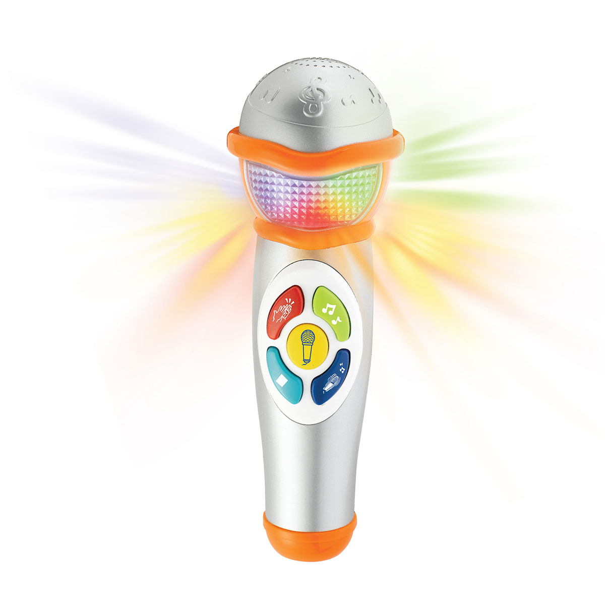 Devenez une pop star avec votre propre Micro. Avec son fond musical d'accompagmenment,ses effet sonores rythmiques et ses lumières clignotantes, vous aurez complètement l'impression d être sur scene. Pendant que vous chanterez et danserez, vous entenrez des effets reverb très tendance, et quand vous aurez terminé votre prestation, appuyez le bouton d'applaudissements pour recevoir se ovations bien méritées.
