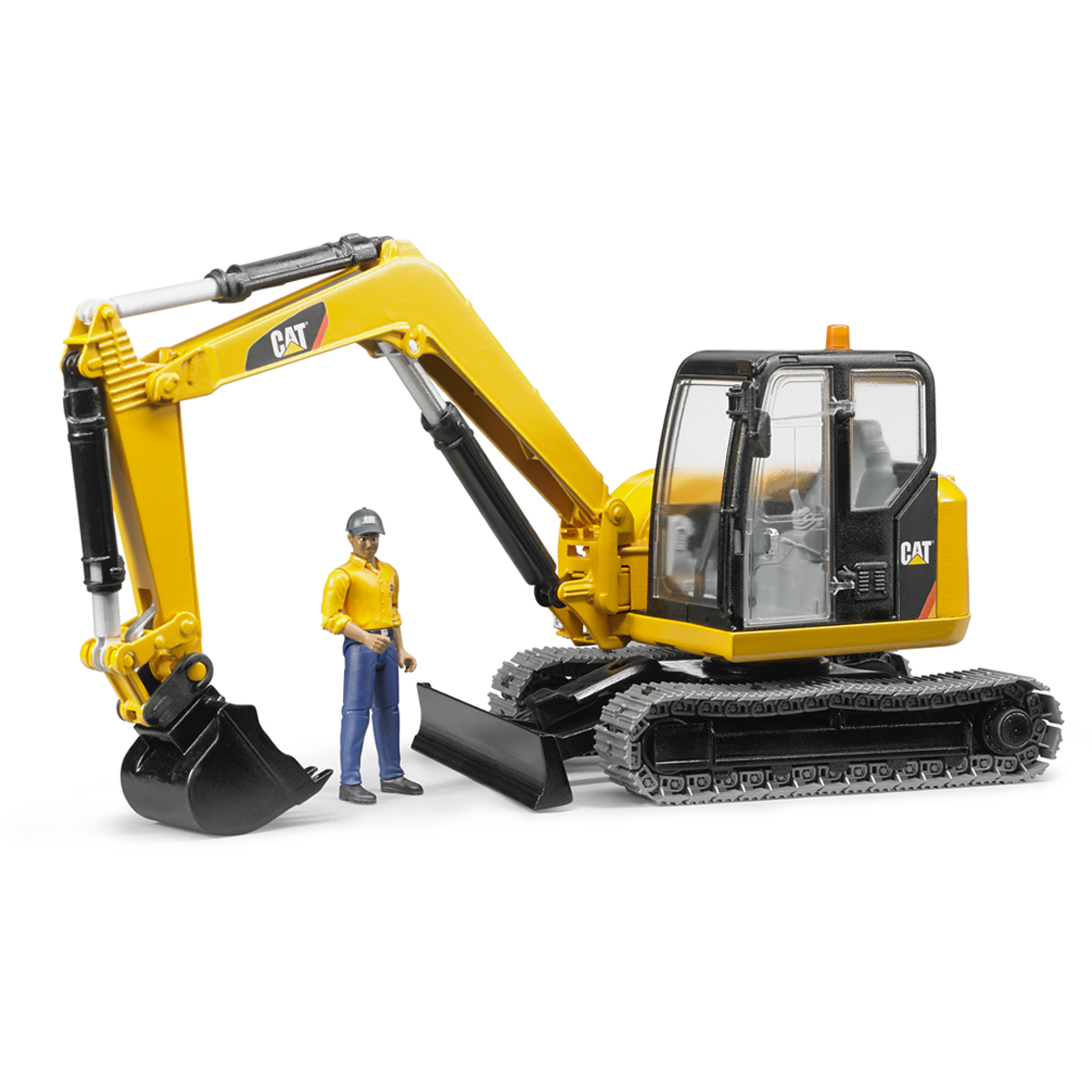 La mini-pelleteuse Cat n’est pas vraiment mini, mais un géant de sa catégorie. Grâce à ses dimensions compactes, elle trouve aussi ses marques sur les terrains étroits. Le bras de pelleteuse pivotant sur le côté la rend indispensable pour l’agriculture et l’horticulture ainsi que pour les tâches de construction générales et de petits travaux de terrassement. Avec son système de chenilles, les terrains difficilement accessibles ne sont pas un obstacle. Le panneau du châssis apporte plus de stabilité en cas d’utilisation sur un sol meuble et peut être utilisé pour de simples travaux de nivelage. Outre ses fonctions de jeu réalistes, le modèle est pourvu de nombreux équipements. La pelle est amovible. Le moteur peut être ouvert à l’arrière et la porte de la cabine vitrée peut également s’ouvrir pour permettre à l’ouvrier de chantier réaliste aux membres mobiles monter à bord et prendre place en toute facilité. La pelleteuse pivote à 360° et le bras de la pelle tourne sur 180° -just like the real thing.