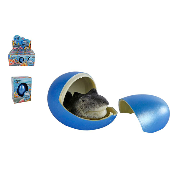 On met l'œuf pendent 12 à 24 heures dans l'eau, il grandit ensuite un requin. Les oeufs avec les requin de croissance viennent assortis dans un display.