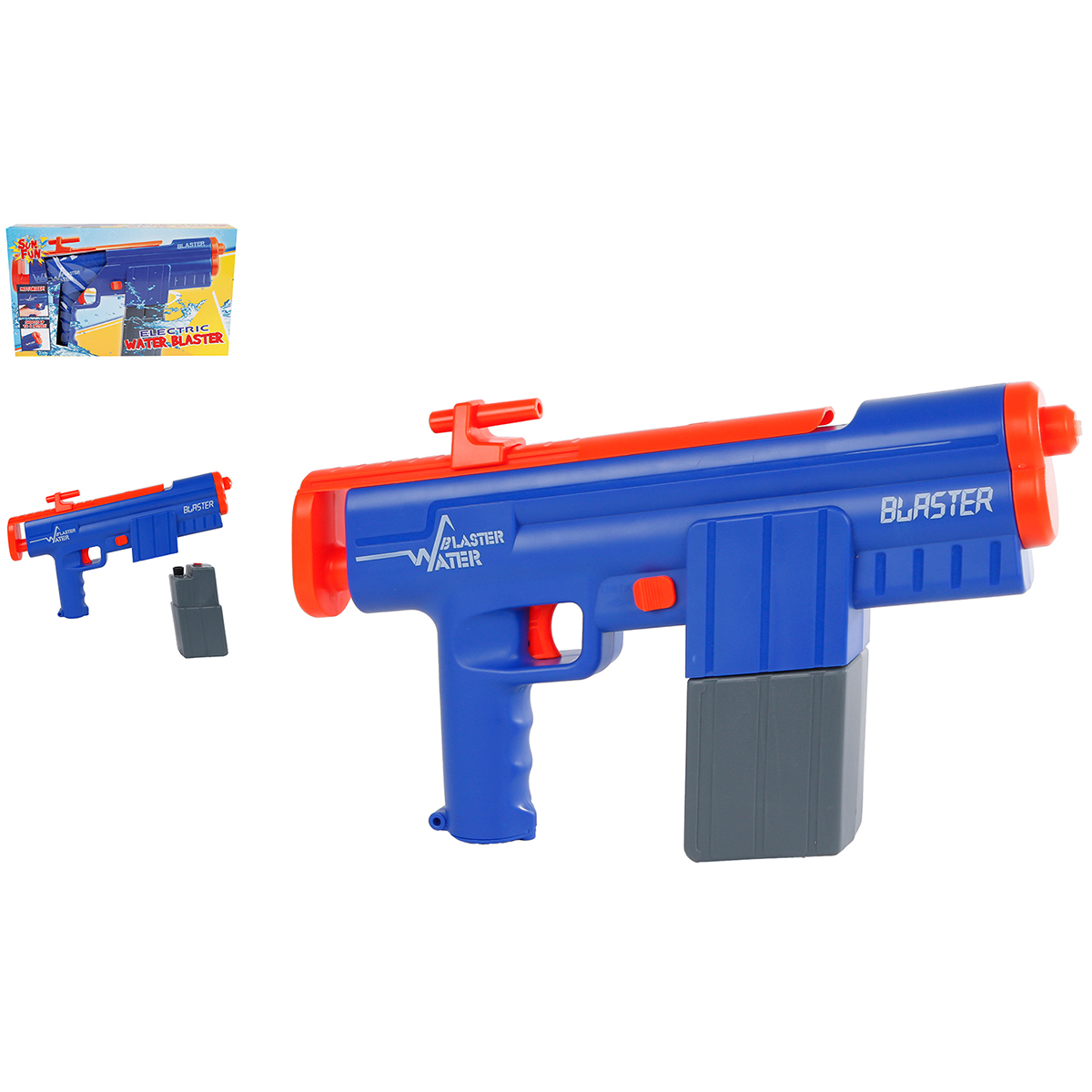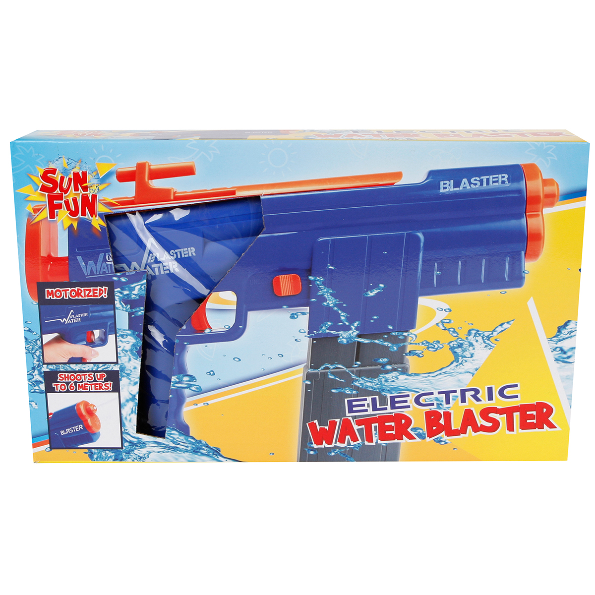 Sun Fun Pistolet à eau électrique en bleu/orange 34.5cm. Distance 6 mètres.
