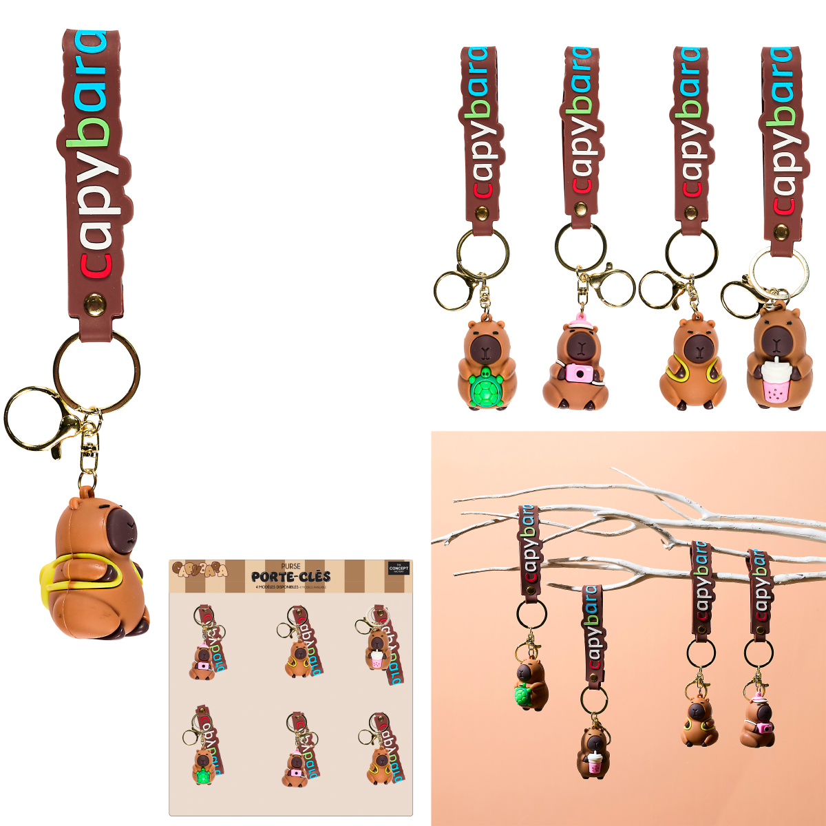 Porte-clés capybara, 4-fois assortis