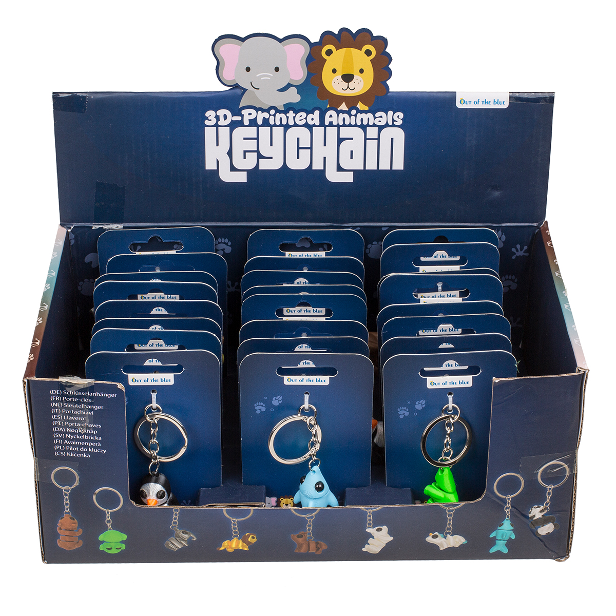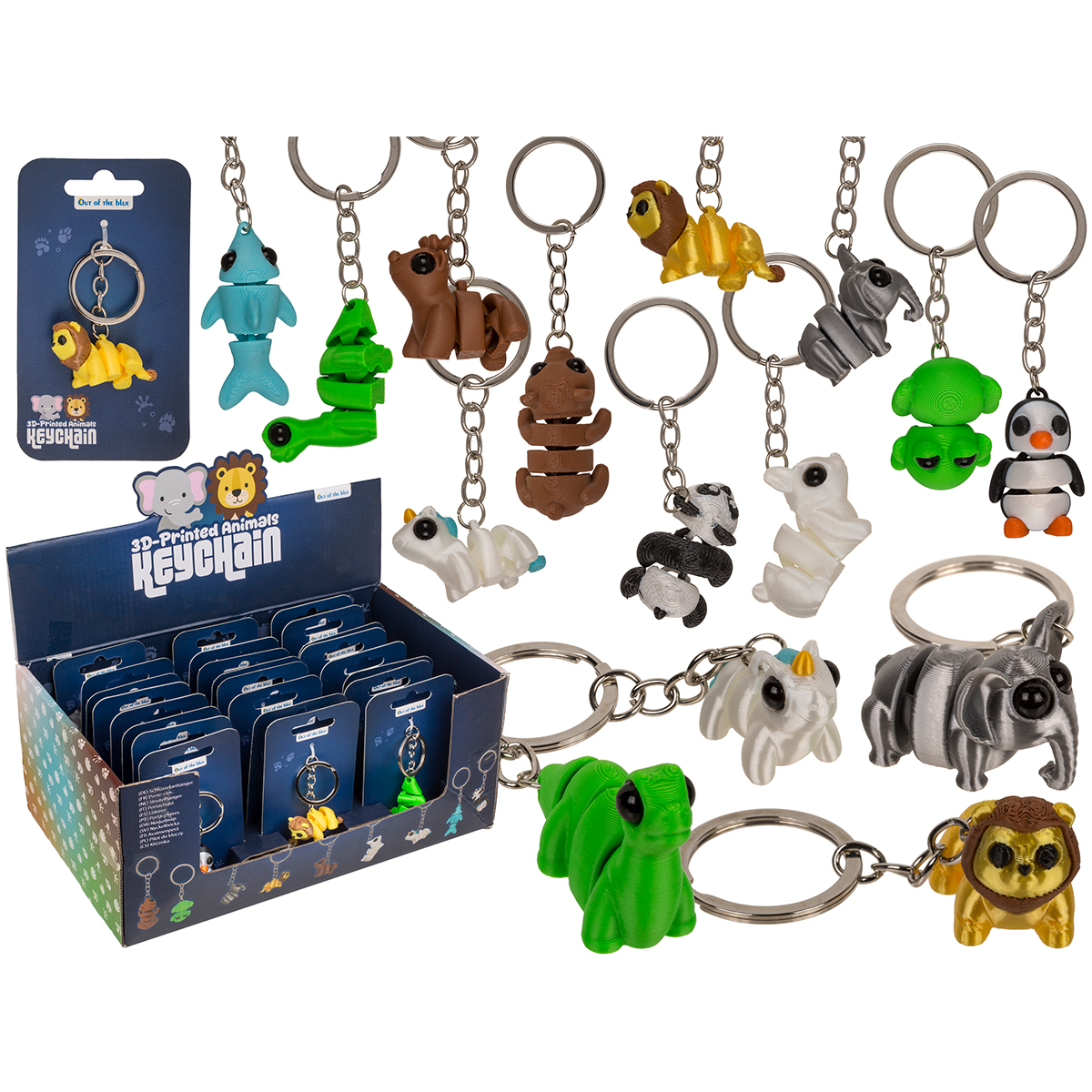 Porte-clés métalliques, animaux imprimés en 3D, assortiment de 11 modèles, 24 pièces dans le présentoir