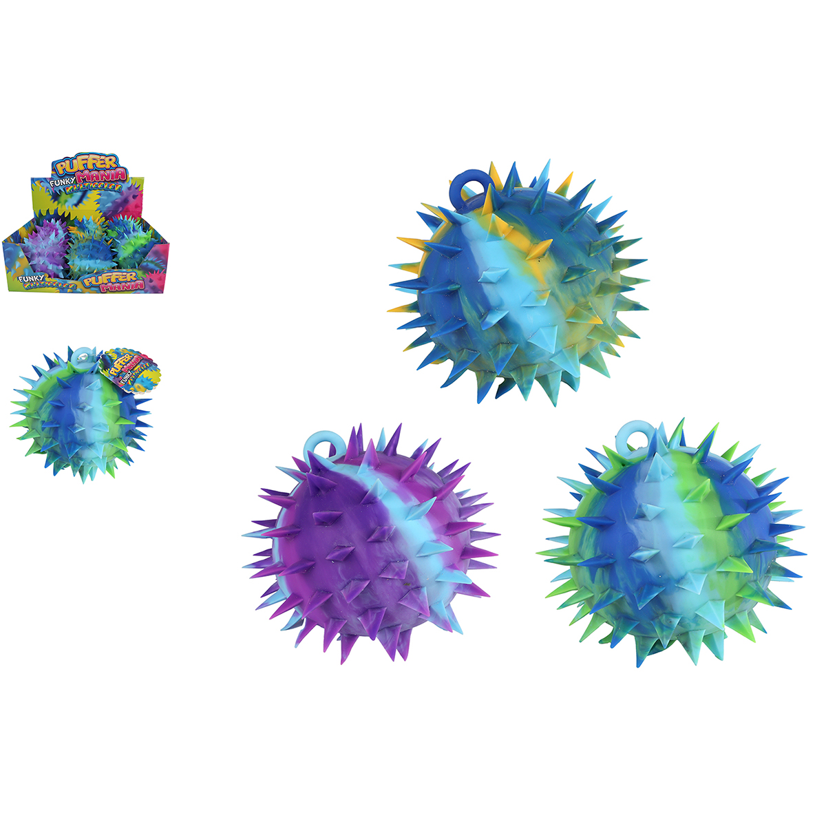 Puffer balle Spikes 18cm, mutlicouleur, 3 couleurs assortis en display.