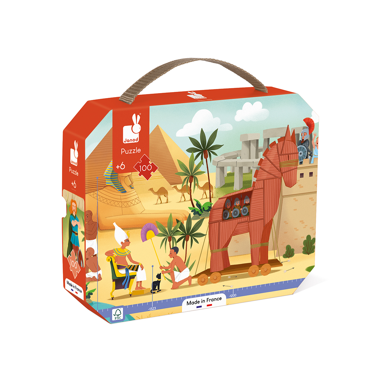 Apprendre tout en s'amusant, c'est possible avec cette frise historique. Ce joli puzzle panoramique en carton sur le thème de l'Antiquité et de la mythologie est composé de 100 pièces. 1 poster contenant des informations sur les différentes périodes est également inclus pour aider votre enfant dans la réalisation de ce puzzle mais aussi pour en apprendre davantage. Il est facilement transportable grâce à sa jolie valisette. Ce puzzle est idéal pour développer la patience et la motricité fine. Puzzle fabriqué en France et à base d’encres végétales. Puzzle pour les enfants à partir de 6 ans.