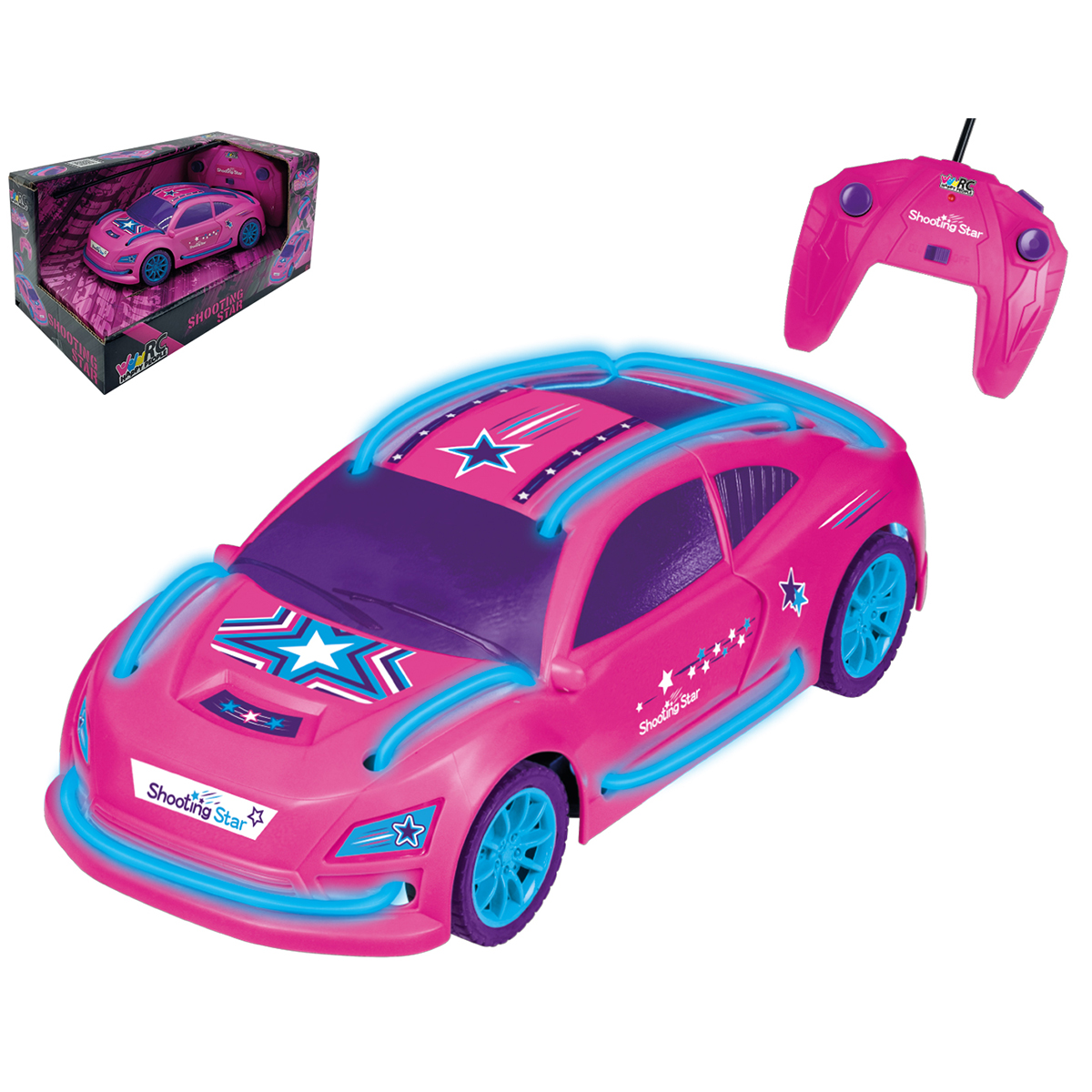 RC Shooting Star 40MHz avec lumière néon, fonction de direction et de conduite complète, âge 6+, fonctionne sur piles: Véhicule: 3x LR6 AA (1,5V), télécommande: 2x LR6 AA (1,5V).