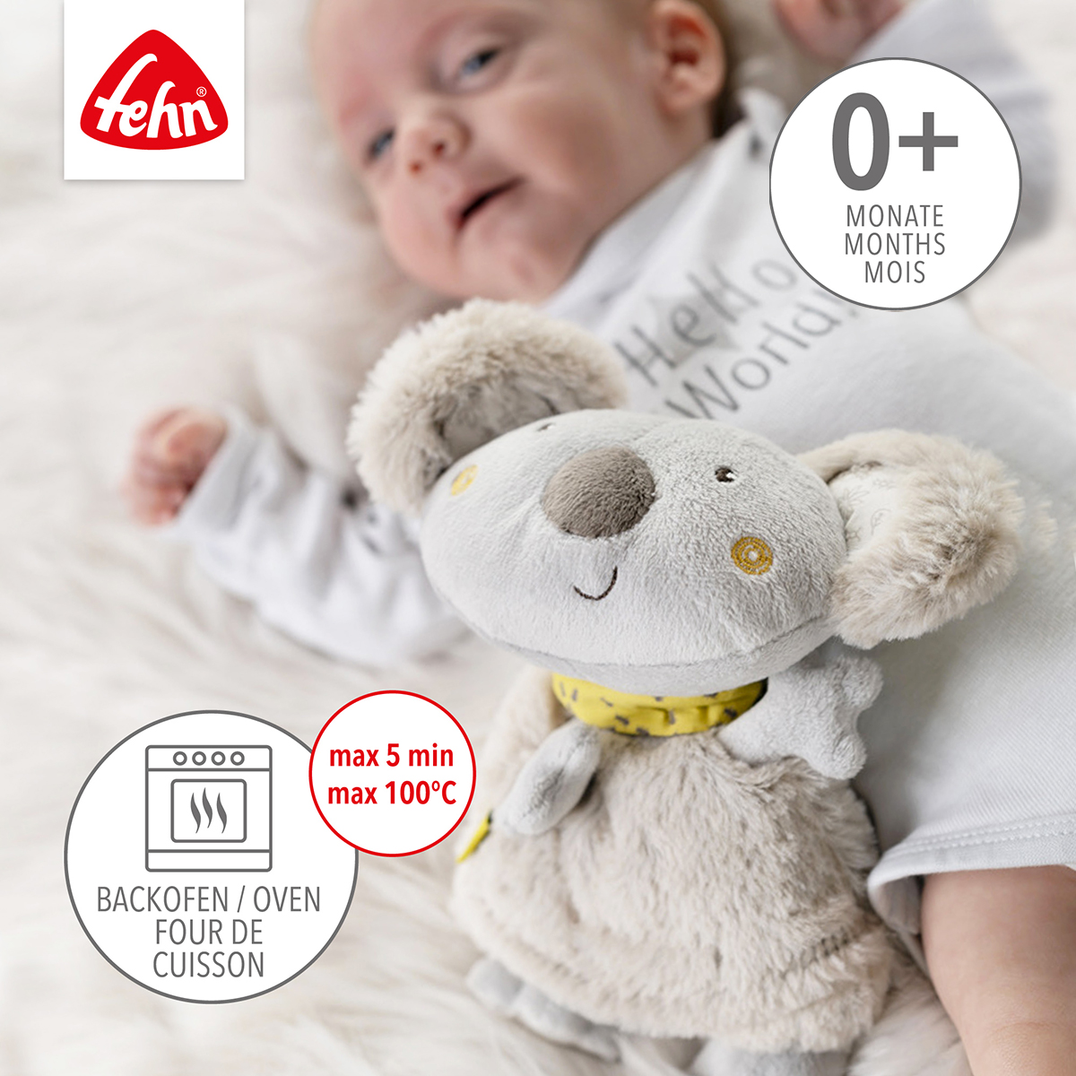 Peluche avec sac de chaleur amovible pour bébés et tout-petits. Dans le berceau, dans le siège bébé ou dans la poussette: la peluche douillette apporte chaleur, confort et aide doucement les petits à s'endormir - le compagnon idéal! L'intérieur du koala peut facilement être chauffé au micro-ondes ou au four, grâce aux pépins de raisin, la chaleur se dégage de manière particulièrement bénéfique. Les pépins de raisin se nichent contre le corps et procurent une chaleur agréable! Housse amovible: Le sac chauffant peut être facilement retiré grâce à la fermeture Velcro pratique - la housse Koala est lavable à 30 ° C et reste toujours fraîche et confortable!