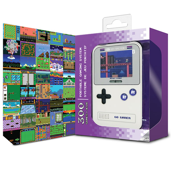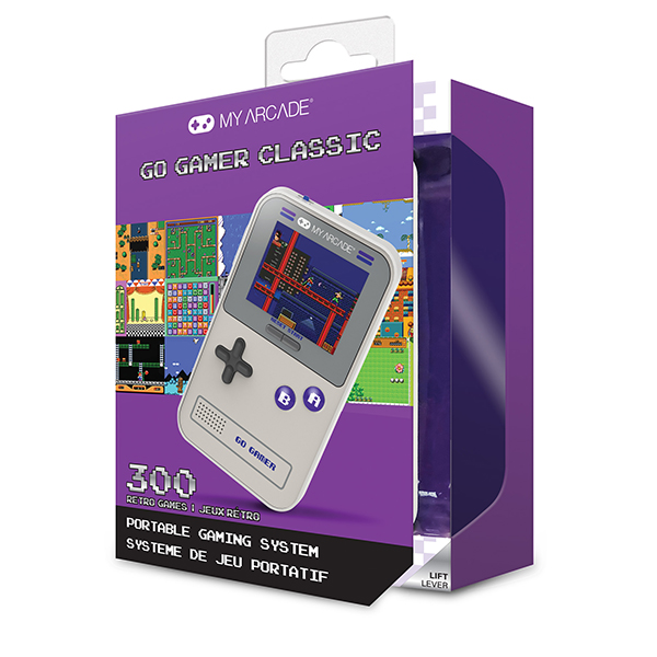 GO GAMER CLASSIC (300 JEUX EN 1). Rempli de 300 jeux intégrés. Écran couleur de 2,5''. Bouton LED marche/arrêt pour les touches éclairées. Haut-parleur intégré avec réglage du volume. Prise casque de 3,5 mm pour brancher vos écouteurs. Alimentation par 3 piles AAA (non incluses). Emportez vos jeux partout avec vous.