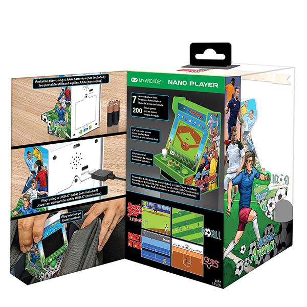 7 titres Jaleco sous licence officielle + 200 jeux bonus de style rétro. Écran couleur 2,4". Haut-parleur intégré avec contrôle du volume. Alimenté par 4 piles AAA (non incluses) ou par n'importe quel câble USB-C® (non inclus). Jouez à la maison ou en déplacement. Parfait pour n'importe quelle salle de jeux, bureau ou vitrine ! Les titres de jeux Jaleco incluent GOAL!™, BASES LOADED™ 1,2,3 & 4, RACKET ATTACK™ et HOOPS™.