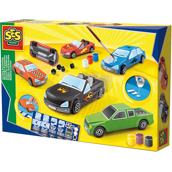 Avec cet ensemble de SES, vous pouvez faire des voitures cool en plâtre qui peuvent rouler! Versez le plâtre dans le moule, ajoutez les roues et laissez tout sécher. Vous pouvez ensuite peindre vos voitures dans vos couleurs préférées. Avec des autocollants, ils ont l'air encore plus cool!