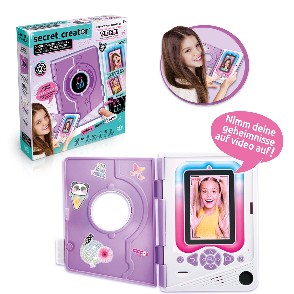 Un journal secret vidéo pour garder tous tes secrets en sécurité ! Déverrouillez votre journal avec votre empreinte digitale et enregistrez vos aventures de la journée en vidéo ! Réalise des enregistrements sympas en ajoutant des filtres vidéo amusants et de jolis effets de lumière autour de l'écran. Avec batterie rechargeable.