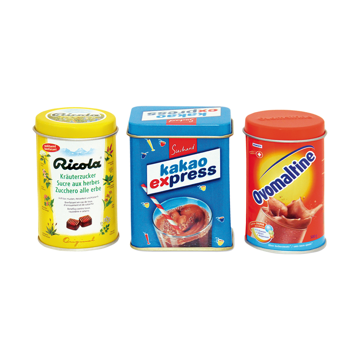 Les boîtes en métal Set 3 pièces, composé de Ricola, le cacao et Ovomaltine.