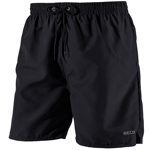 Short de bain pour homme, noir, taille S. Pour tout les activités dans l'eau, en piscine ou sur la plage. Microfibre séchage rapide. Taille élastiquée avec cordon de serrage, slip intérieur, 2 poches. Longueur latérale: 45cm environ.
