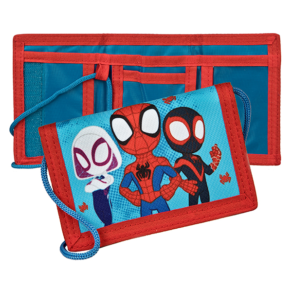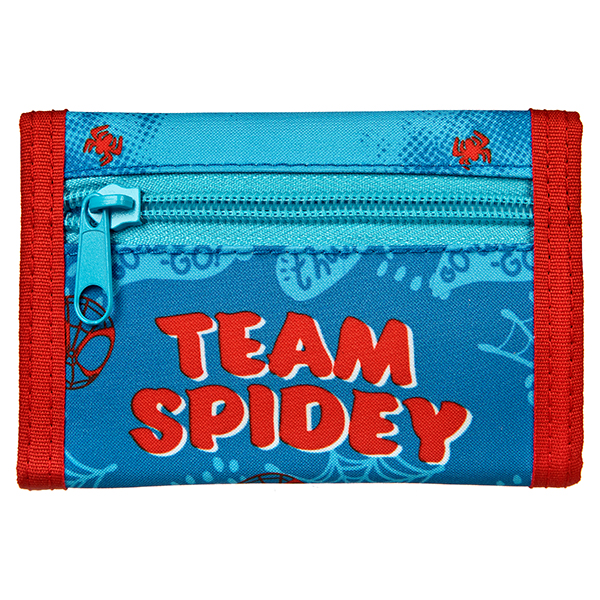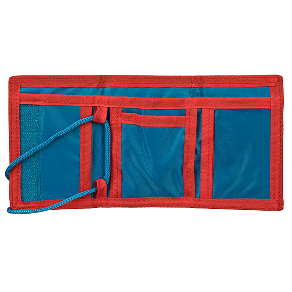 Portemonnaie avec fermeture velcro, ainsi qu'une poche zippée, en polyester.