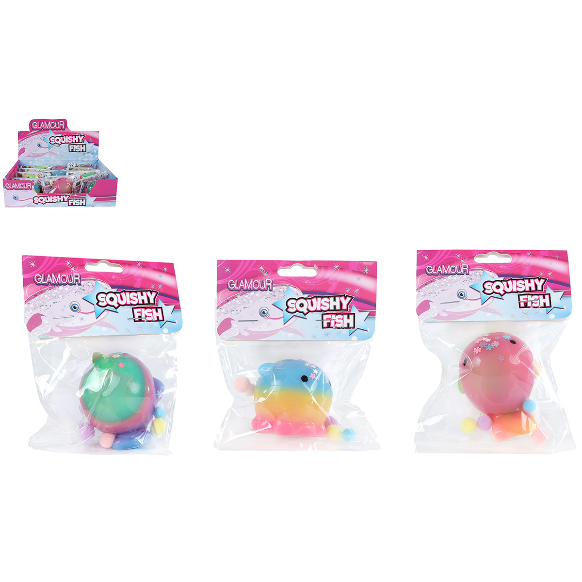 Squishy baleine assortis avec pailletes 3-fois assortis en display.