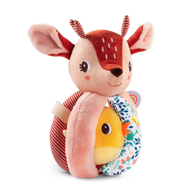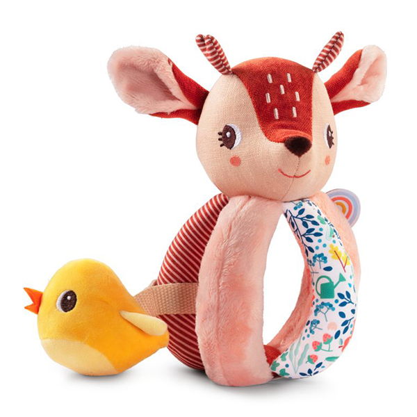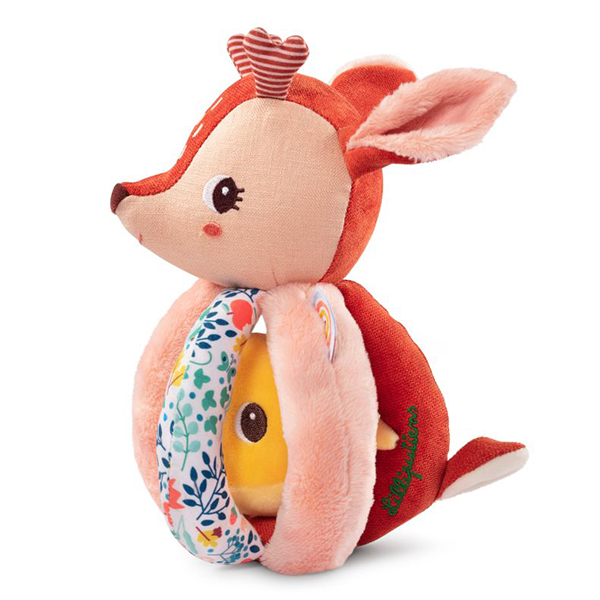 Un hochet original, que les petites mains saisissent facilement. Un petit ami se cache entre les poignées. 100% polyester. Lavable en machine à 30°C - cycle délicat.