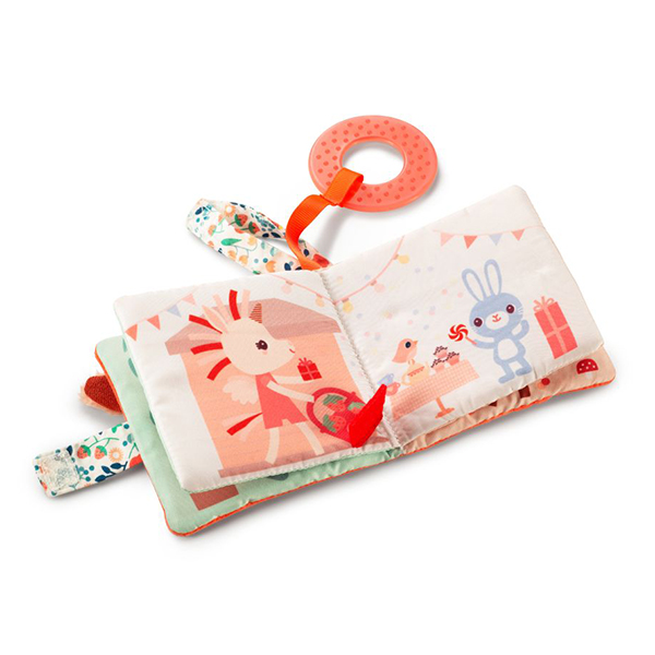 Stella le faon vous emmène dans les bois pour faire connaissance avec ses petits amis. Un imagier interactif tout doux, rempli de surprises pour les yeux et pour les oreilles, et soulageant les petites dents qui pointent dans la bouche de bébé. 100% polyester + anneau dentition : EVA.