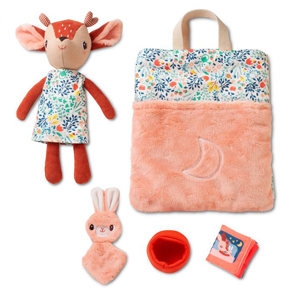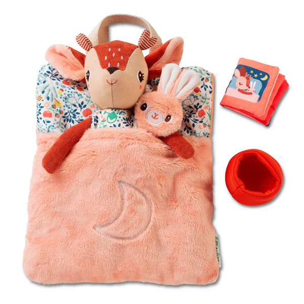 C’est l’heure du dodo! Pouvez-vous aider Stella à se préparer à aller au lit? Elle va sur le petit pot, enfile sa chemise de nuit, met son lange et s’installe ensuite confortablement avec son doudou dans le petit lit douillet. Après la petite histoire du soir, elle éteint la lampe et ferme ses petits yeux. La lune phosphorescente installée sur son petit lit fait office de veilleuse réconfortante. Expérimentez la routine du soir d’une manière ludique avec Stella. Un ensemble qui apporte sérénité et structure au rituel.