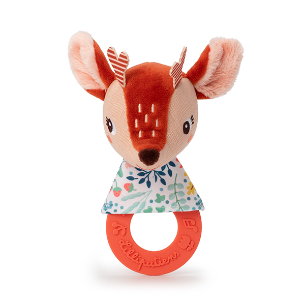 Quand les premières dents de bébé poussent, Stella vient A la rescousse. Son anneau de dentition souple soulage la douleur et son hochet joyeux divertit le bébé.
