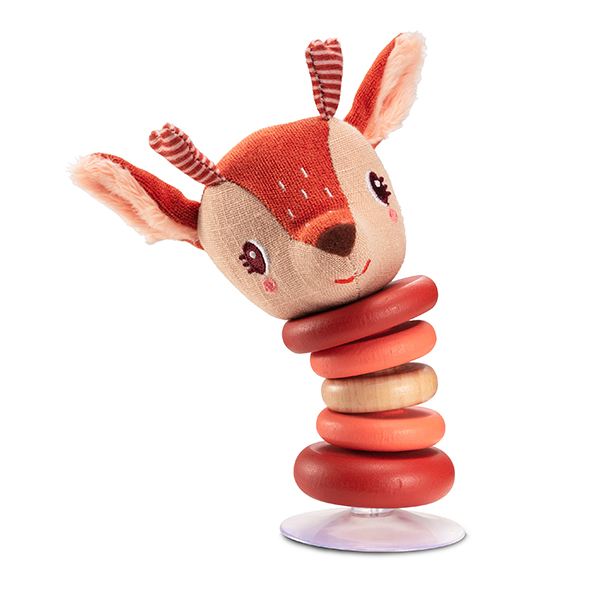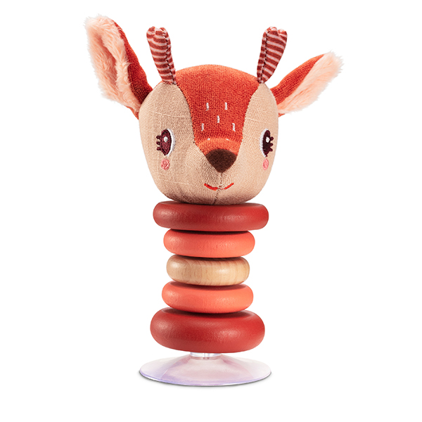 Ce hochet se balance joyeusement dans tous les sens à la moindre poussée. Grâce à la ventouse, il reste parfaitement debout et vous pouvez le fixer n'importe où.