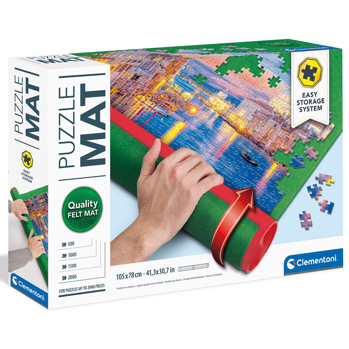 Tapis de puzzle en feutre, pratique et peu encombrante, même si le puzzle n'est pas terminé. Il suffit de l'enrouler et de fournir. Contet: Tapis Rouleau et velcro.