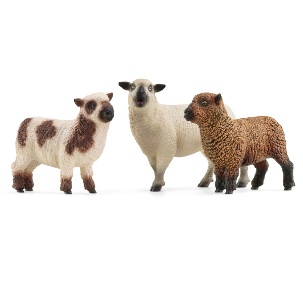Impossible de résister à ce groupe d’amis laineux! Les trois moutons observent les passants avec curiosité. On dirait qu’ils ne sont pas rassurés: le mouton chocolat Southdown Babydoll et le mouton tacheté brun et blanc Southdown Babydoll se rapprochent de leur ami le mouton Hampshire, facilement reconnaissable à son museau noir. L’union fait la force! Serrés les uns contre les autres, les trois moutons se sentent plus en sécurité. Et ils ont bien raison: la vie est plus belle lorsqu’on est entouré de ses amis!