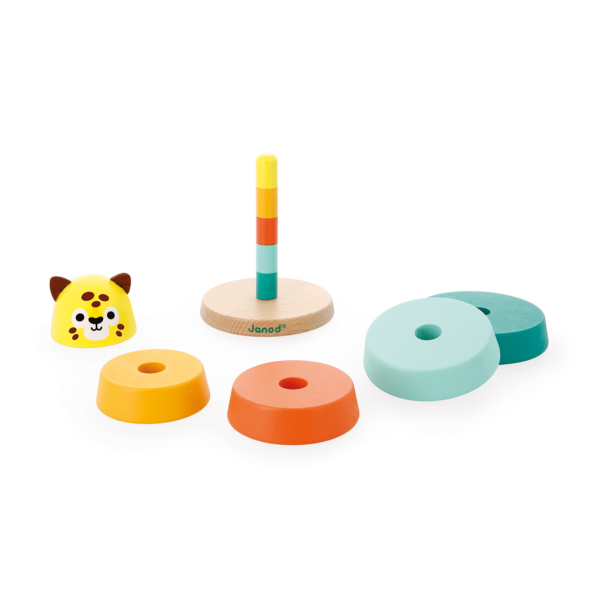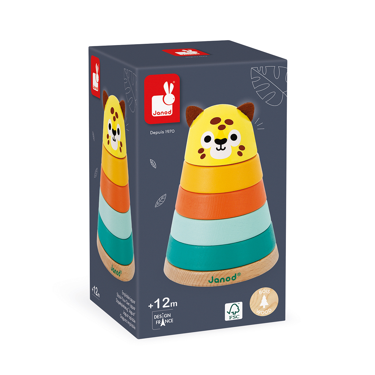 Partez à la rencontre de notre magnifique jaguar! Tout en suivant les couleurs inscrites sur la tige en bois, votre enfant devra empiler les 5 pièces de tailles différentes pour reconstituer le jaguar. Idéal pour développer sa motricité fine et se familiariser avec les couleurs. Jouet en bois et peinture à l'eau. Jouet d'éveil pour les enfants à partir de 12 mois. Pour créer cette gamme nous avons pris la direction des tropiques à la recherche d’évasion, d’exotisme et de contraste. Pour illustrer au mieux cette nature sauvage, nous avons réuni des animaux joyeux aux couleurs vitaminées et des éléments végétaux aux teintes apaisantes.