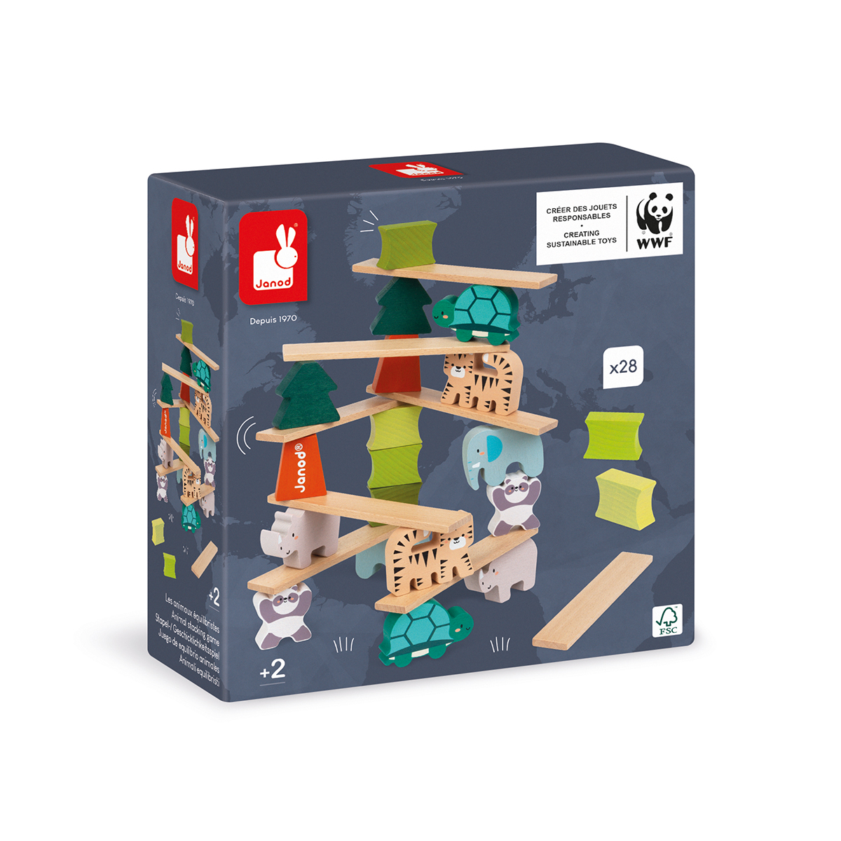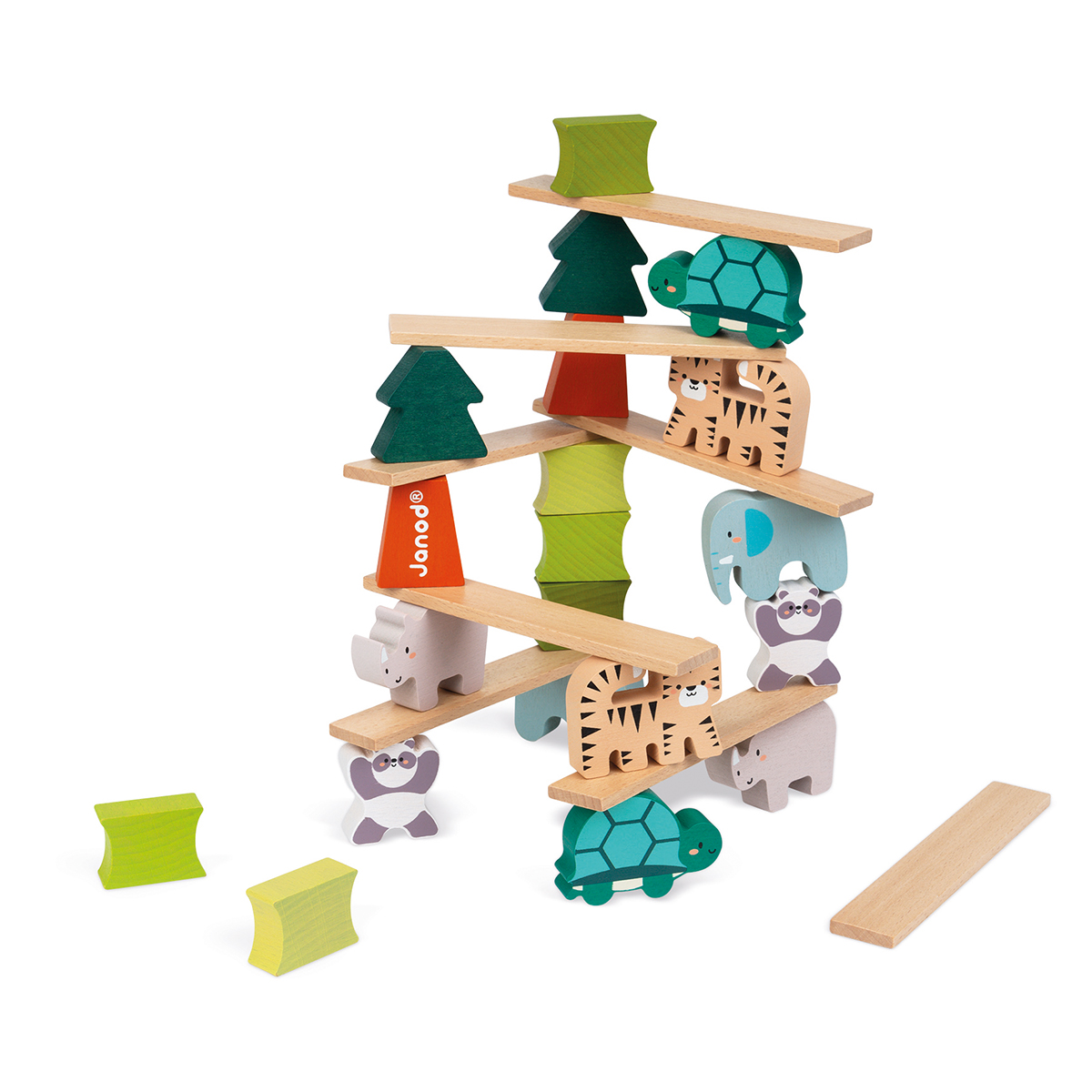 Ce jeu d'équilibre 2 en 1 est composé de 28 pièces.Dans un premier l'enfant va pouvoir se raconter de belles histoires en jouant avec les pièces adaptées à la taille de ses mains, et dans un second temps il va pouvoir s'entrainer à construire la tour la plus haute en équilibrant toutes les pièces. Idéal pour développer adresse et dextérité. Bois massif et peinture à l'eau.