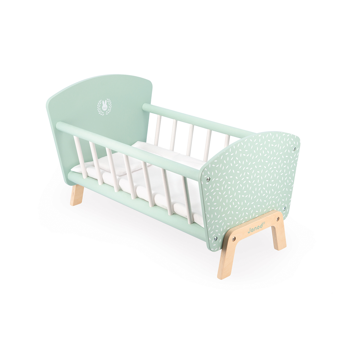 Il est l’heure de coucher bébé… ce magnifique lit est idéal pour border son poupon et l’emmener doucement au pays des rêves. Avec sa couverture et son oreiller en forme de lapin, il émerveillera les petits garçons comme les petites filles. Compatible avec les poupons jusqu’à 42 cm (poupon non fourni). Jouet d’imitation en bois pour les enfants à partir de 3 ans.