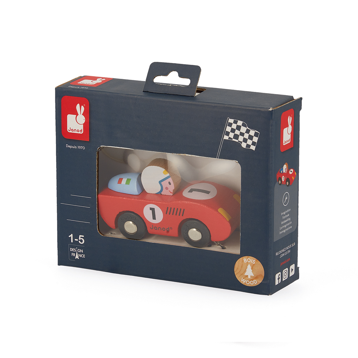 Bolide 9.2x3.3x4.8cm en bois. Racing rouge et bleu. Collectionne les nombreux modèles de la gamme.