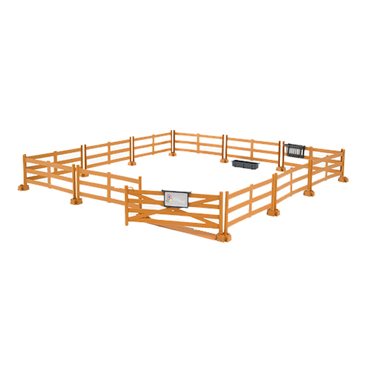 La clôture améliore toutes les scènes de jeu impliquant les véhicules et figurines BRUDER. Qu'il s'agisse d'un parc à chevaux à côté d'un manège ou d'un espace agricole avec des bufs, les éléments d'enclos inclus dans ce kit donnent aux scènes de jeu une image d'ensemble extrêmement réaliste. Selon les envies, les éléments peuvent être combinés les uns aux autres pour agrandir le parc ou mettre différentes situations en scène. En plus des onze éléments d'enclos et de la porte, le kit contient un râtelier, une plaque nominative et une mangeoire. Le plaisir de jouer peut déjà commencer avec une vache et un agriculteur de la série bworld. Le jeu devient particulièrement intéressant avec une grange ou un manège et d'autres figurines et véhicules de la collection.
