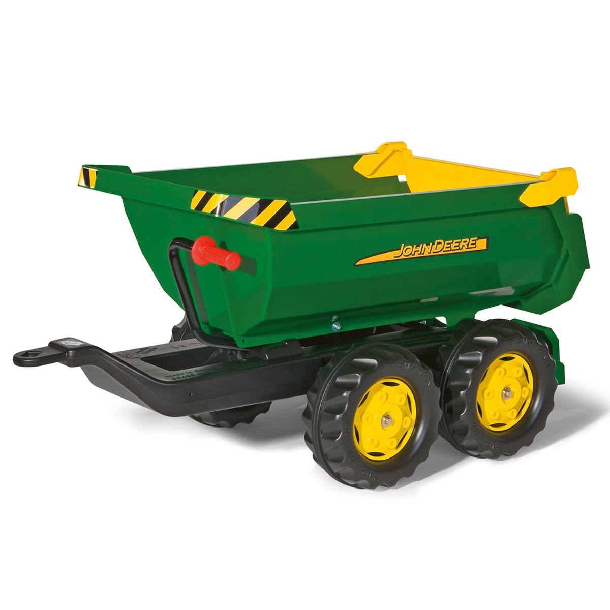 rollyHalfpipe Trailer John Deere - grand camion-benne à grande capacité de charge avec essieu-tandem pour tracteurs à pédale, fonction de basculement avec étrier à bascule, ridelle arrière relevable